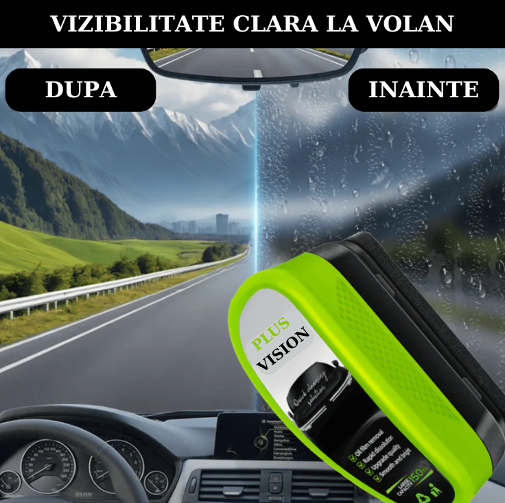 PLUS VISION îmbunătățește claritatea parbrizului, geamurilor și oglinzilor cu o singură aplicare, eliminând aburirea, pelicula de ulei și murdăria asigurând o vizibilitate optimă indiferent de condițiile meteo sau sezon. Ideal pentru siguranța și confortul tău în trafic, acest tratament simplu și eficient previne disconfortul vizual cauzat de suprafețele umede, uleioase sau înghețate ajutând la conducerea vehiculului oferind confort, siguranță dar nu în ultimul
